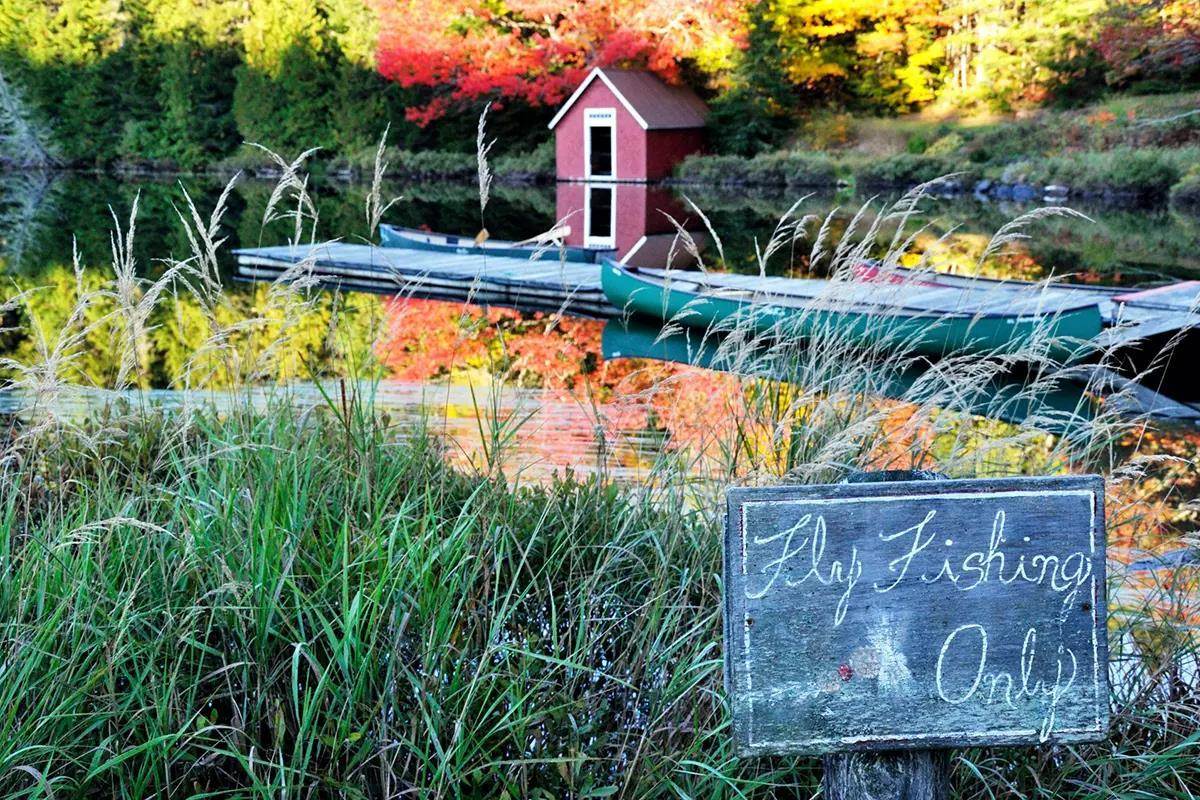 Many Mainers fly fish from old canoes and rowboats carried or dragged into the woods behind a snowmobile and chained to a tree. There are no expensive bass boats or flats boats. Even fly-fishing centric drift boats are scarce in Maine. And American made pickup trucks with plow frames and toolboxes are far more common than SUVs.