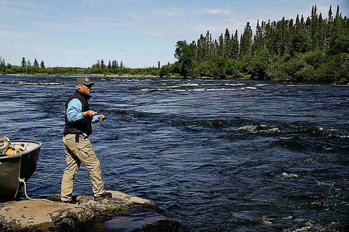 Fly-in anglers at Gods River Lodge near the outlet or Gods Lake Lodge have been fishing the upper river and the lake since 1955, but most of their clients use spinning tackle to focus on lake trout, walleye, and northern pike. The river runs 128 miles to the town of Shamattawa near the eastern shore of Hudson's Bay, and while lodge anglers flog the first few miles, the river is punctuated with many severe rapids, chutes, and drops-making trips far downriver both memorable and difficult.